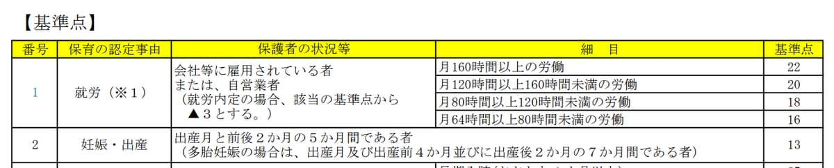 - 就労状況や健康状態といった、保護者の基本情報をポイント化した点数のこと。